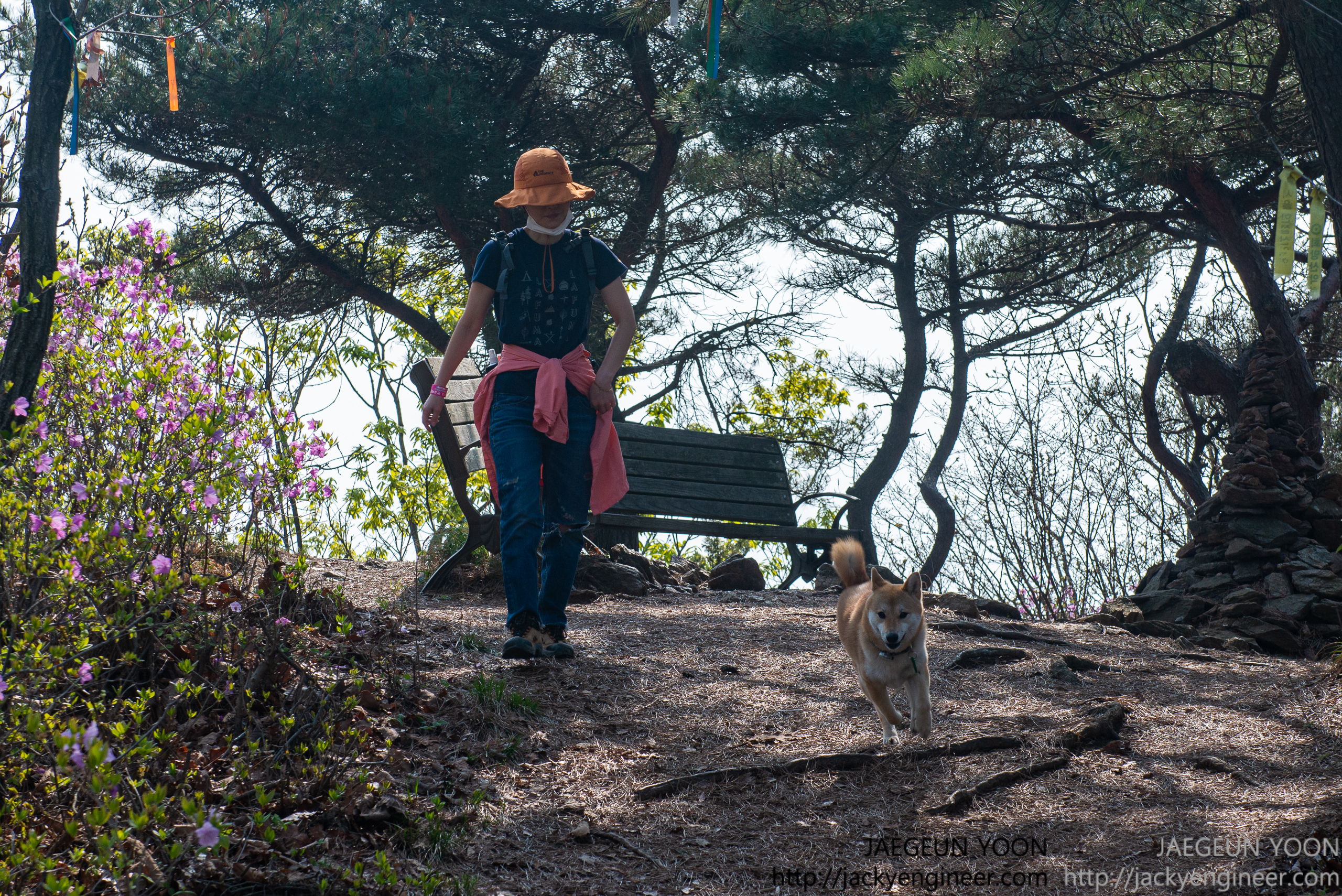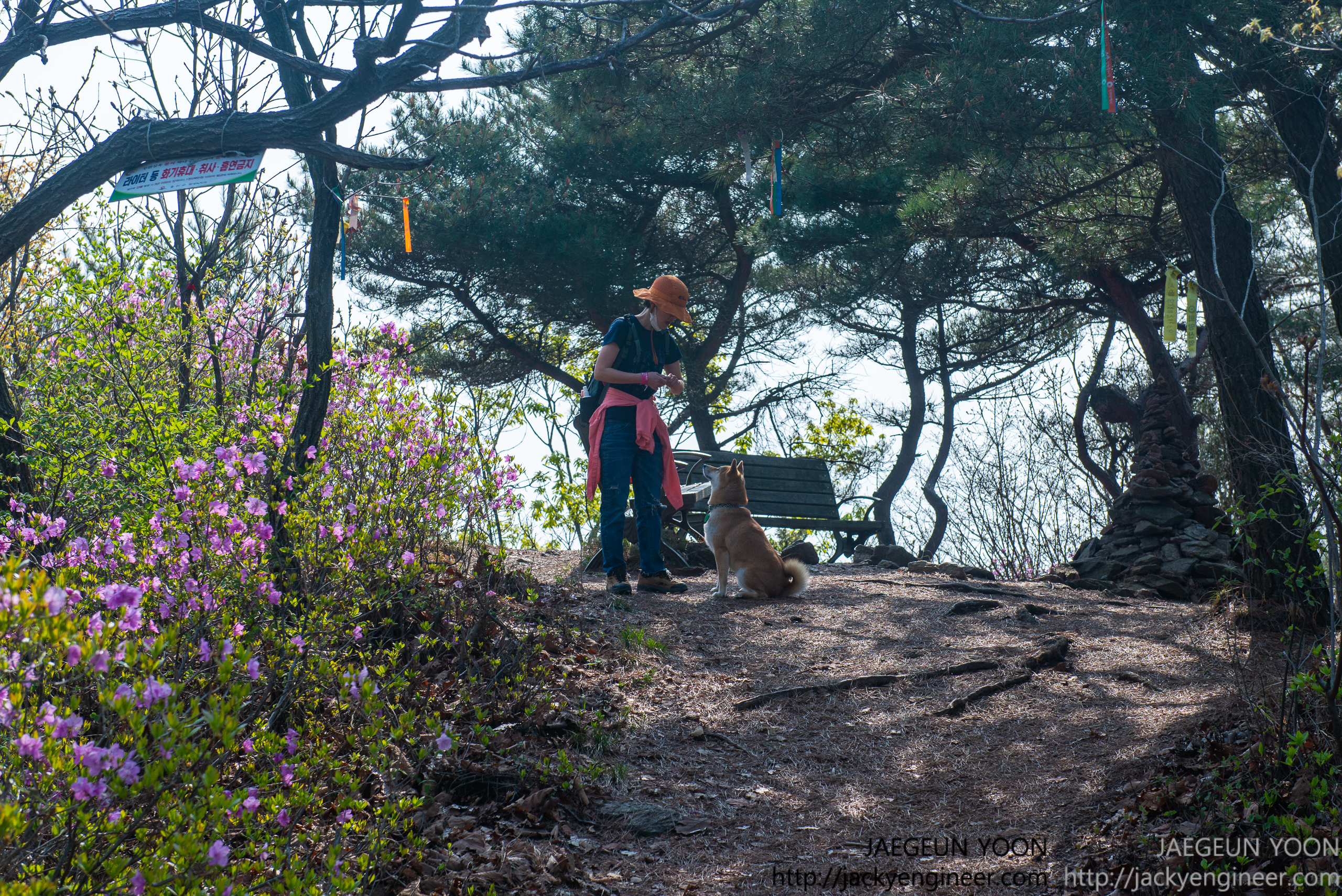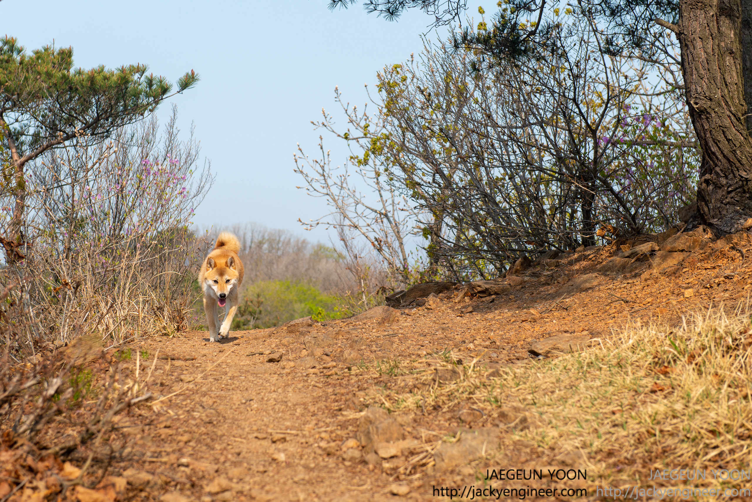중간 중간 등산객이 없을때는 오프리시도 경험해 봅니다. 그런데 저한테서 멀리 떨어지지 않고 5~6걸음 정도 앞서 길을 걷더라구요.. 등산객이 거의 없을 주중에 다시 찾아오게 된다면 오프리시 시간이 좀 더 길게 할 수 있지 않을까 싶습니다.