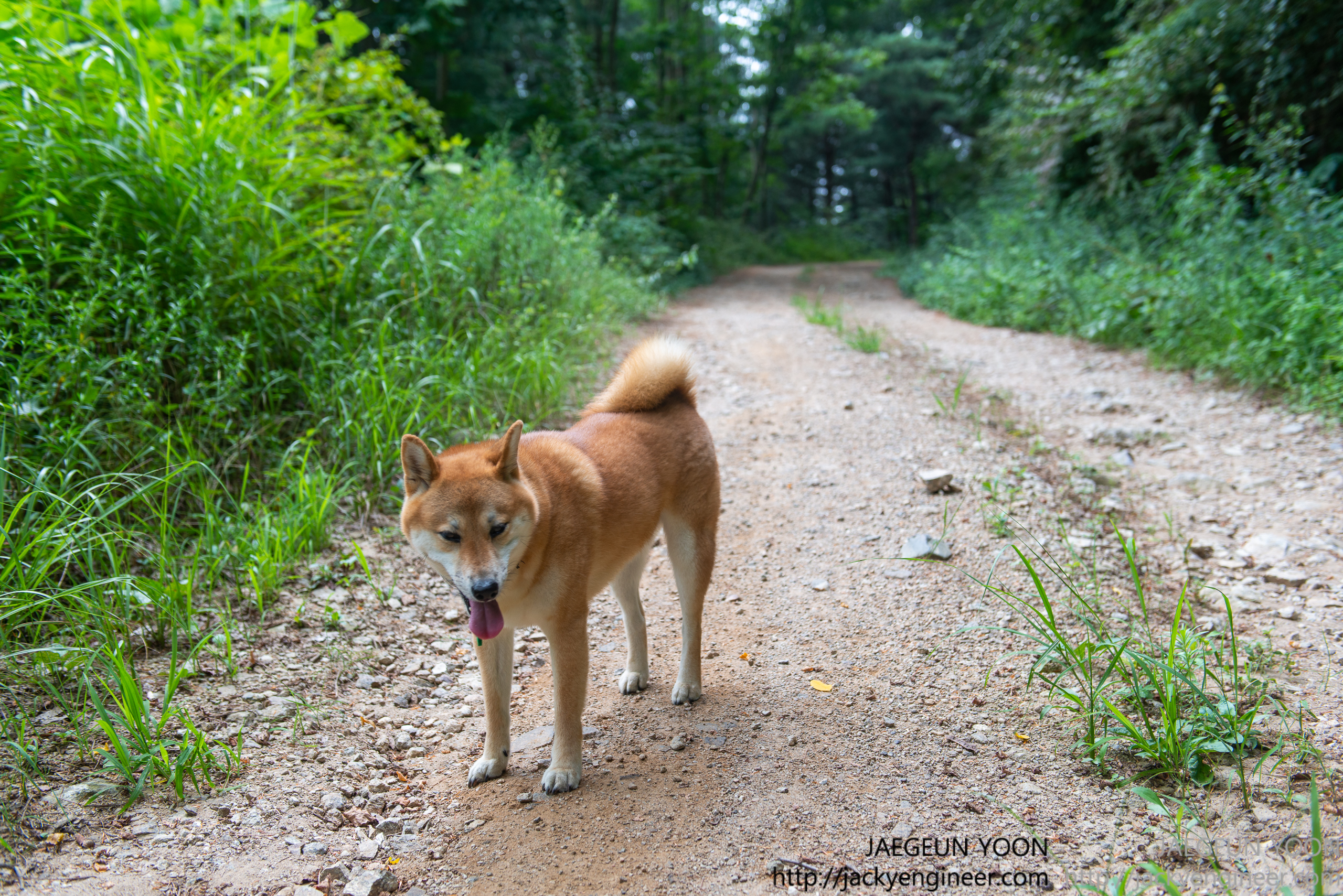 앞서 가다가 주변 풀냄새도 맡고 그러네요..