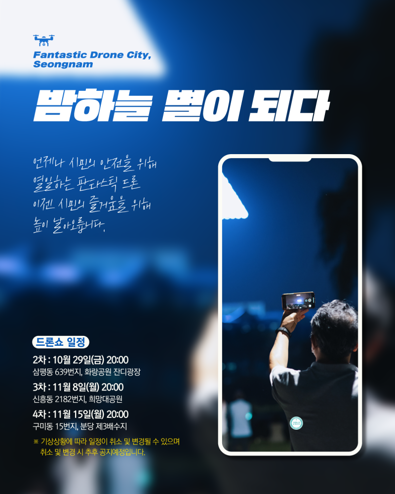 성남시에서 드론으로 촬영한 쇼 전체 영상입니다.