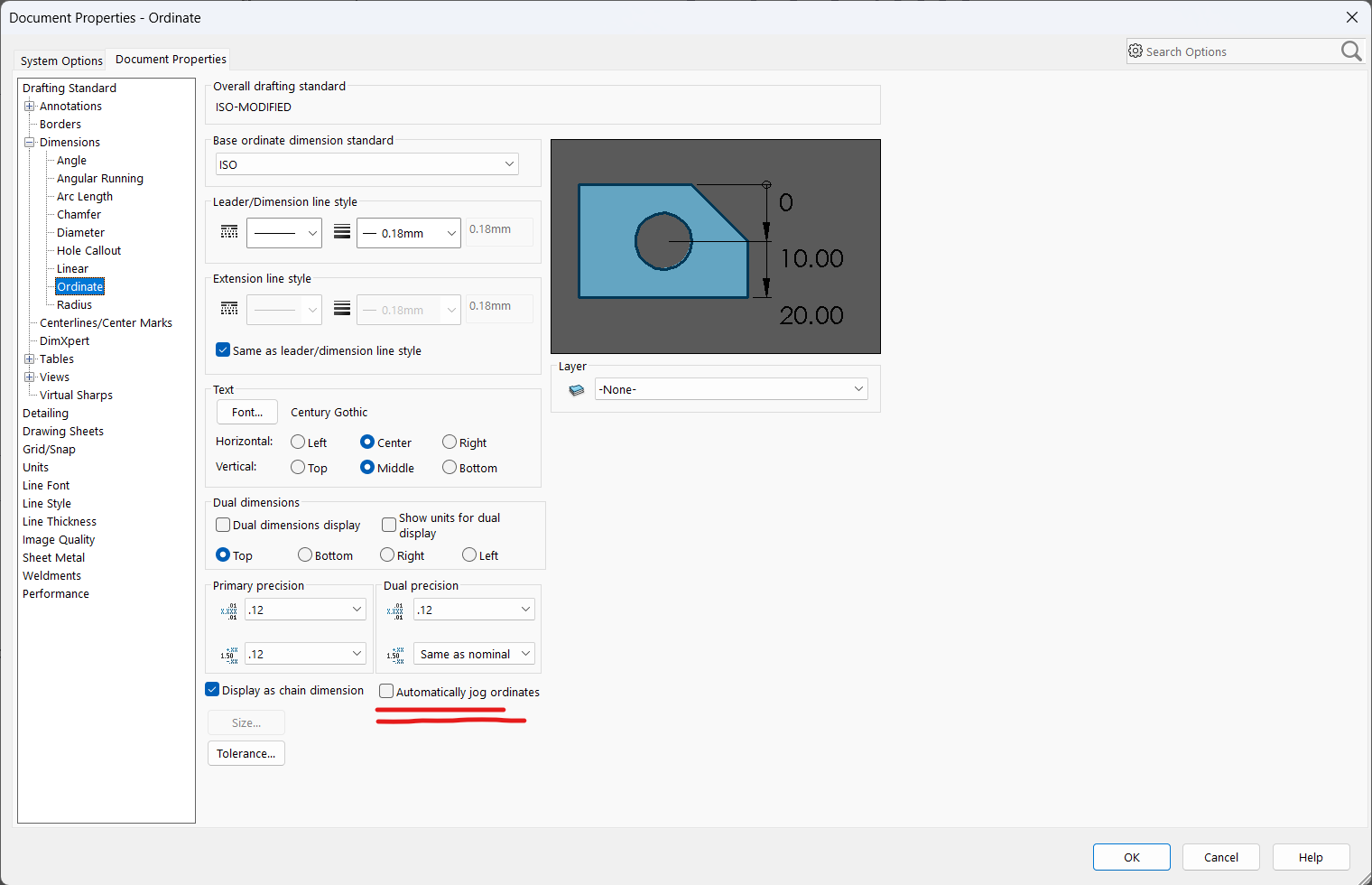 Solidworks - 좌표 치수 입력 시 치수선 겹쳐지는 현상 개선