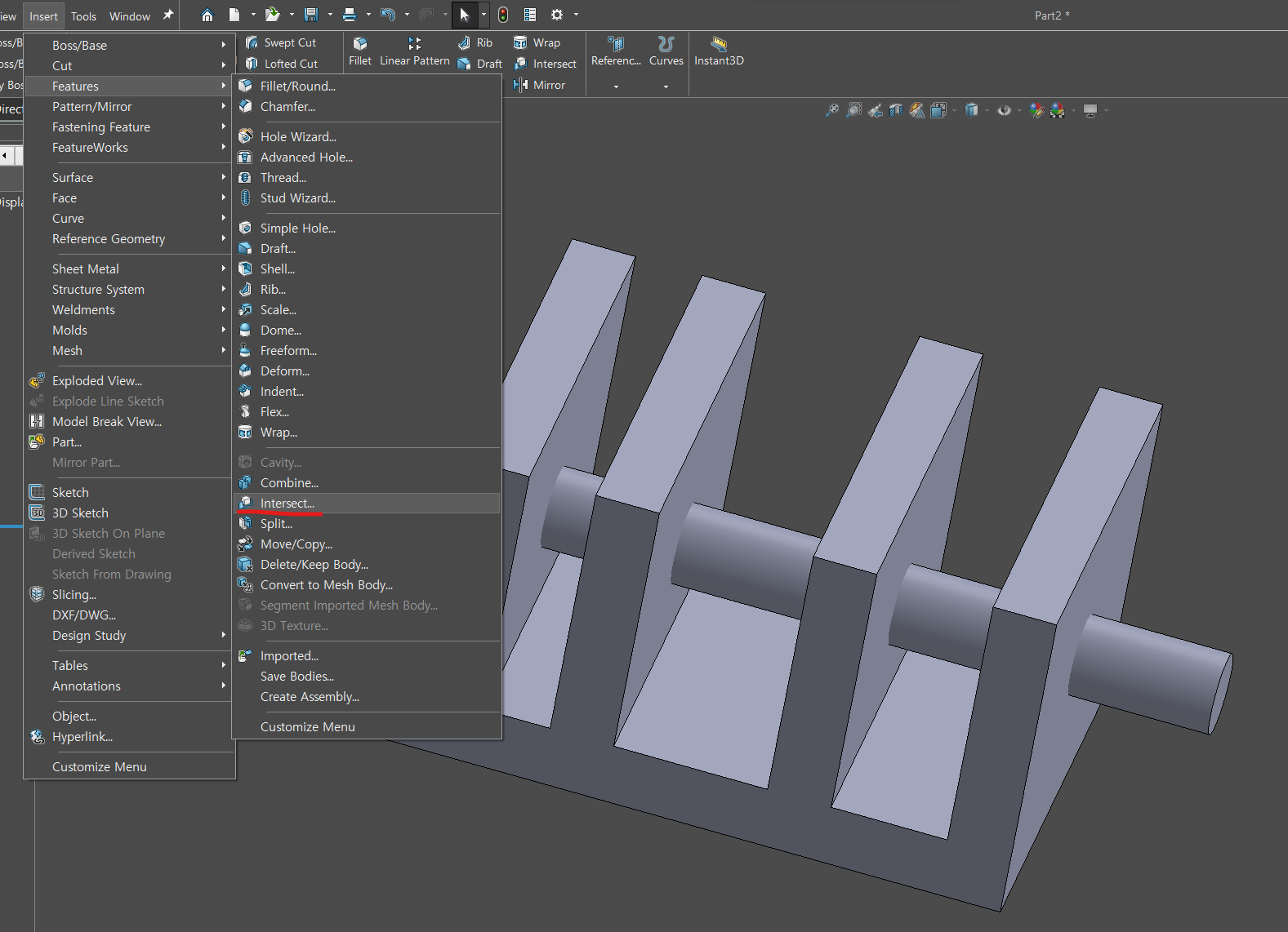 Solidworks - Multi-body 기반 intersect